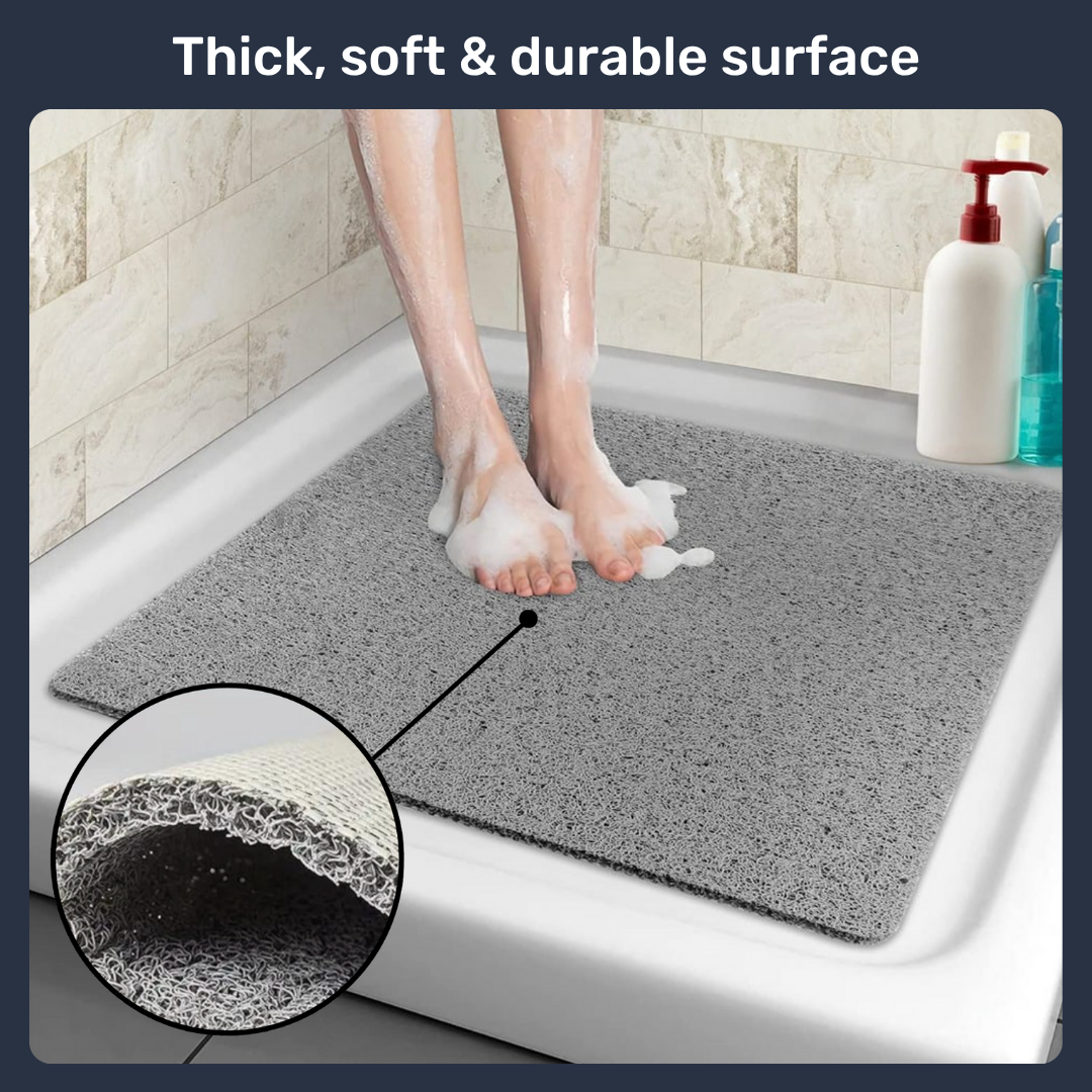 Our Non-Slip mat isn't just safe, it's like an added luxury to your shower! It's soft and thick, providing a plush and comfortable surface to stand on over your hard shower floor. Since it effectively drains water and germs, cleaning is as easy as rinsing after every shower.