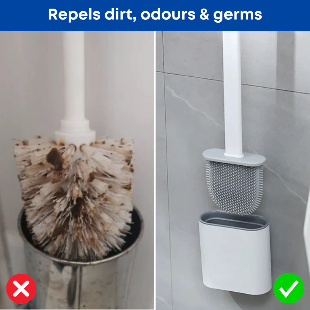 Introducing the OzBath™ Silicone Toilet Brush, the easiest and most hygienic approach to cleaning your toilet. Its flexible head effortlessly scrubs hard-to-reach corners, and its hygienic silicone ensures your brush always stays clean and dry. The water-repellant bristles won't fray or rust like ordinary toilet brushes, and germs rinse right off for a more hygienic toilet and bathroom.