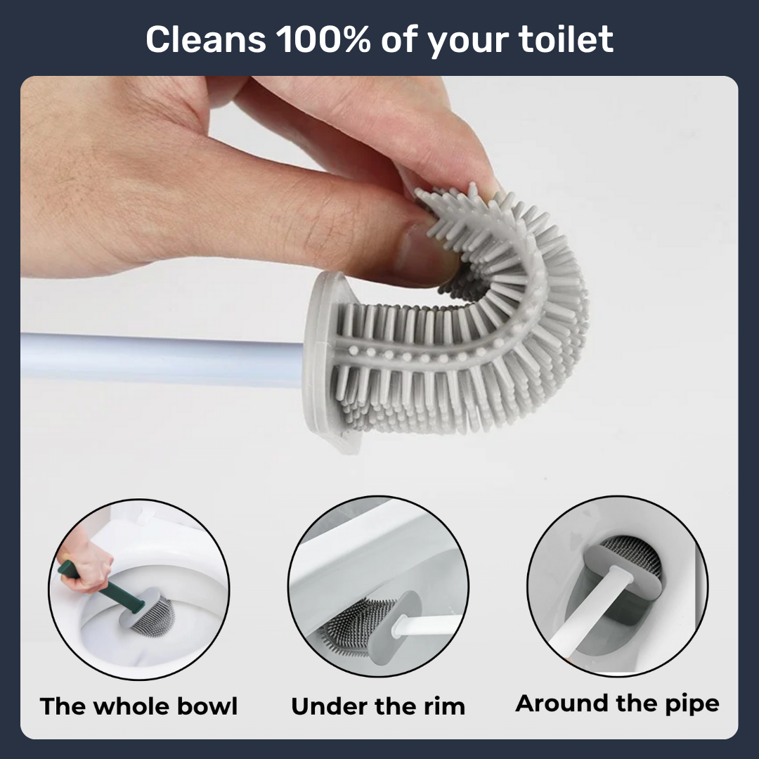 Our Toilet Brush is ultra flexible, effortlessly cleaning hard-to-reach corners. It easily reaches under the rim and scrubs tricky corners near the pipe, and its soft silicone bristles won't ever scratch your toilet bowl.